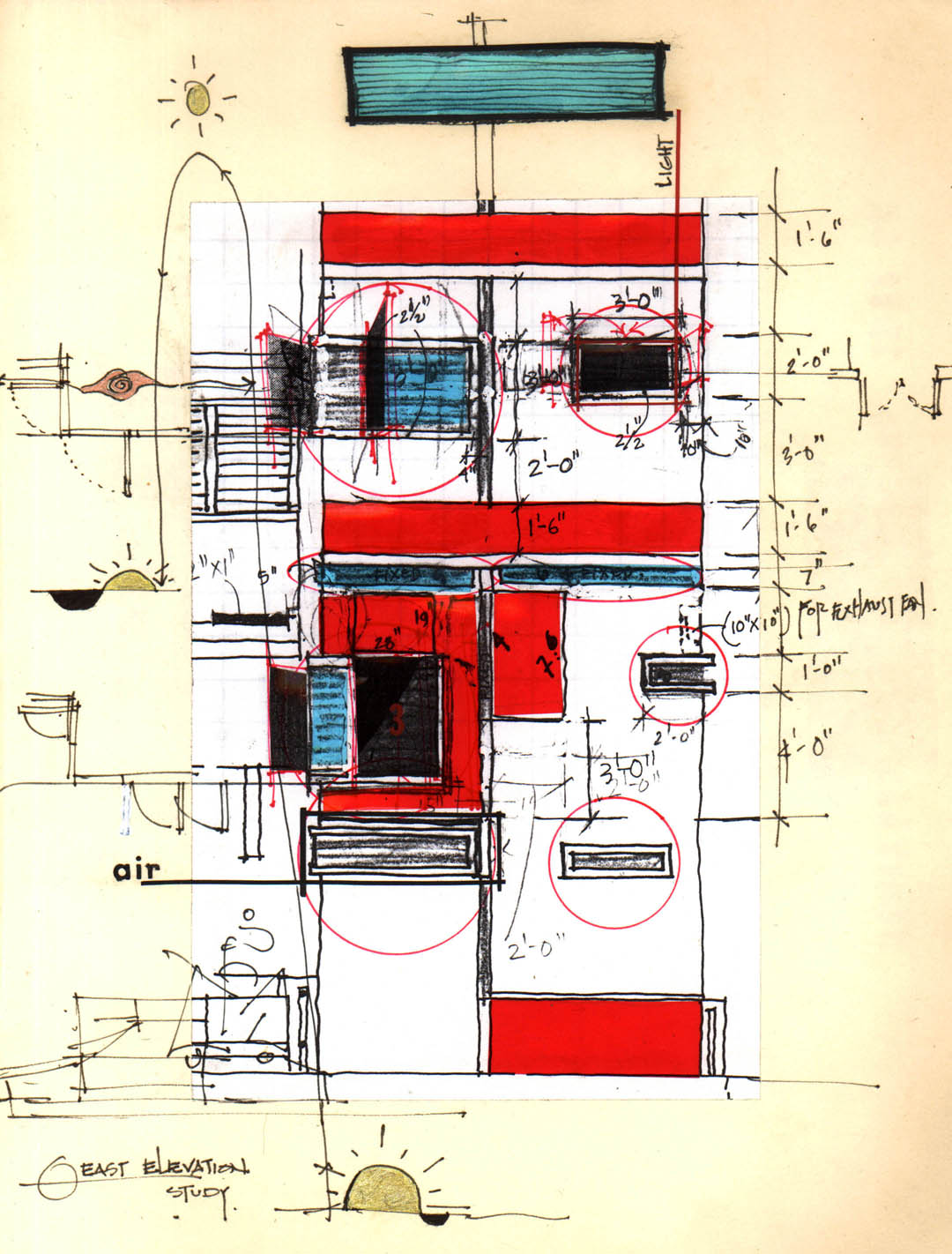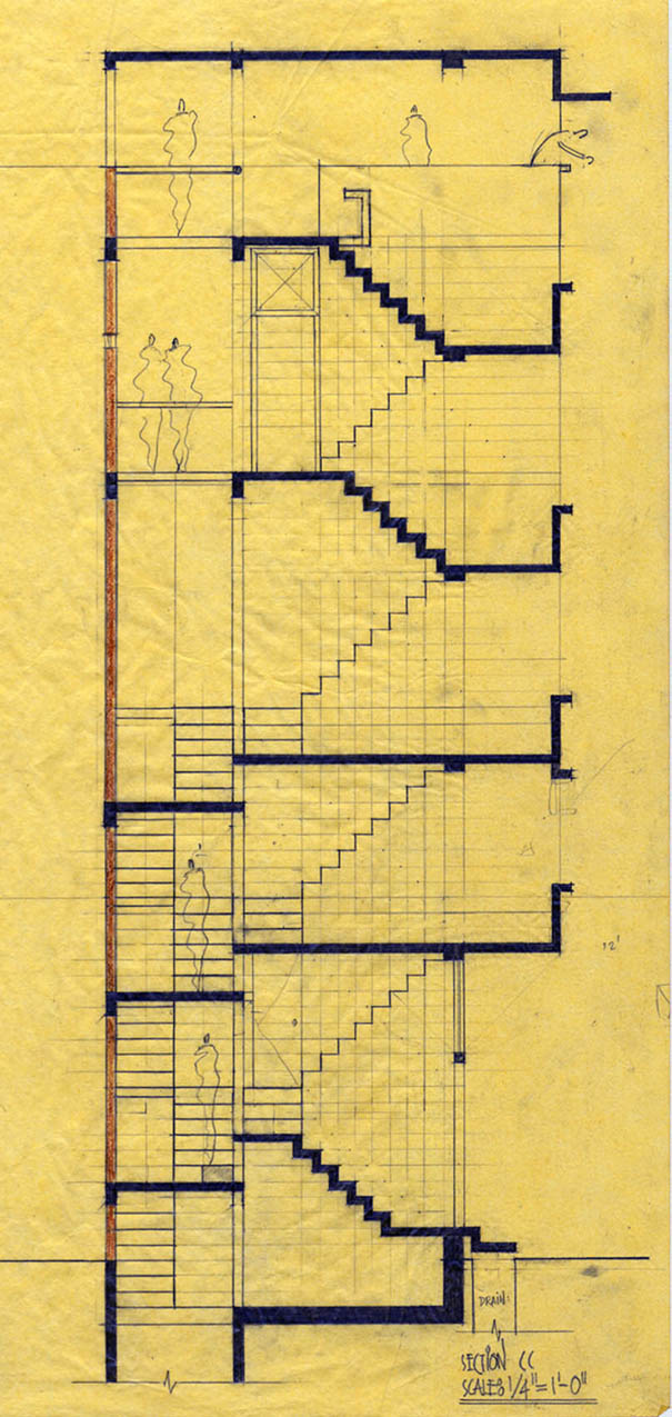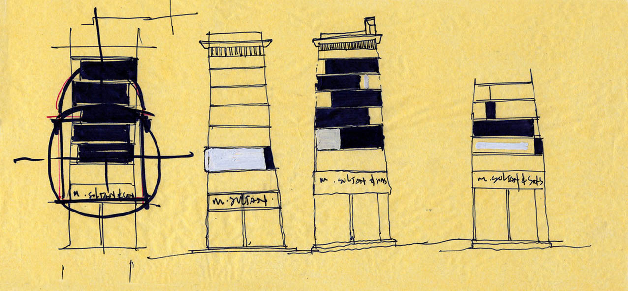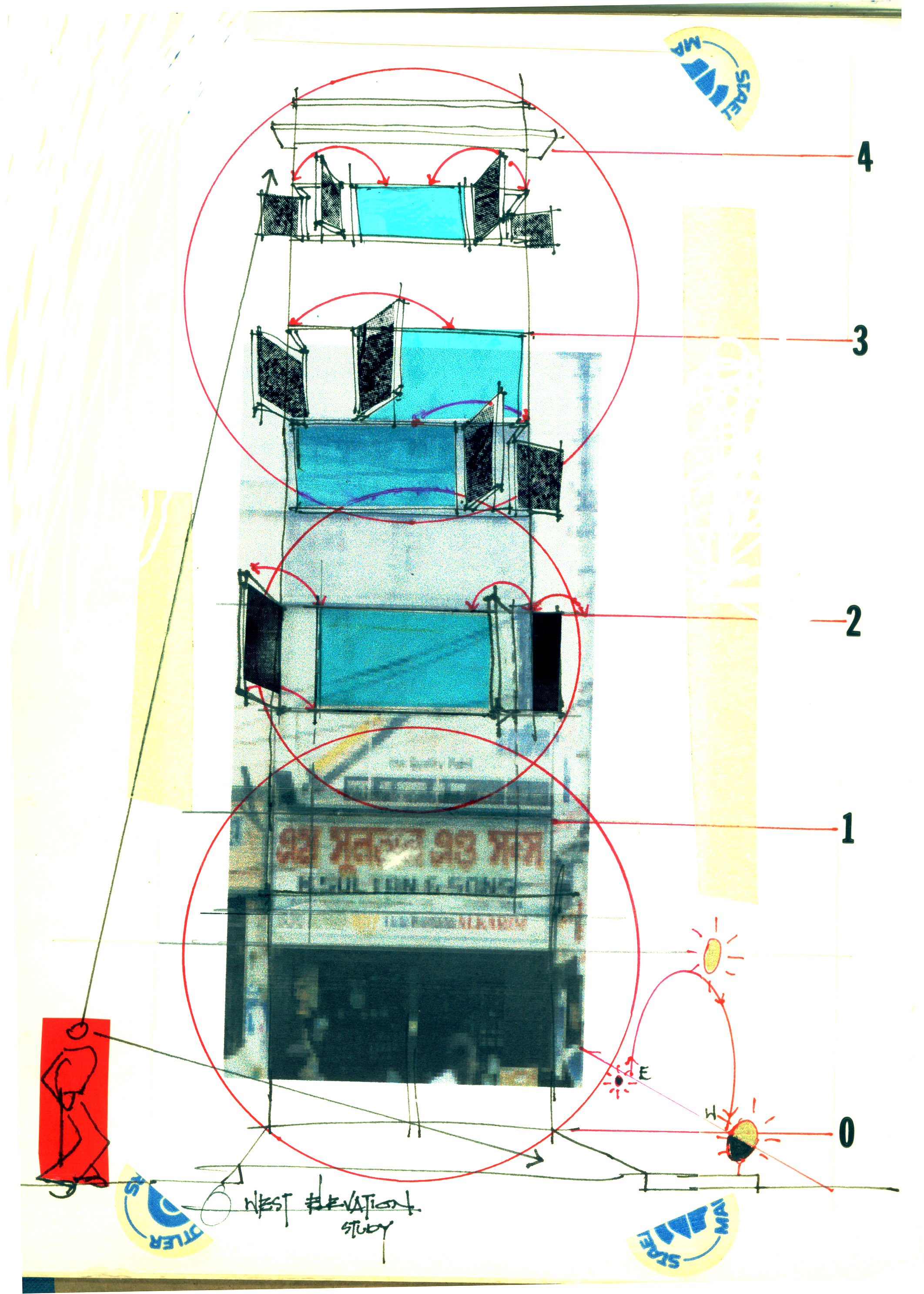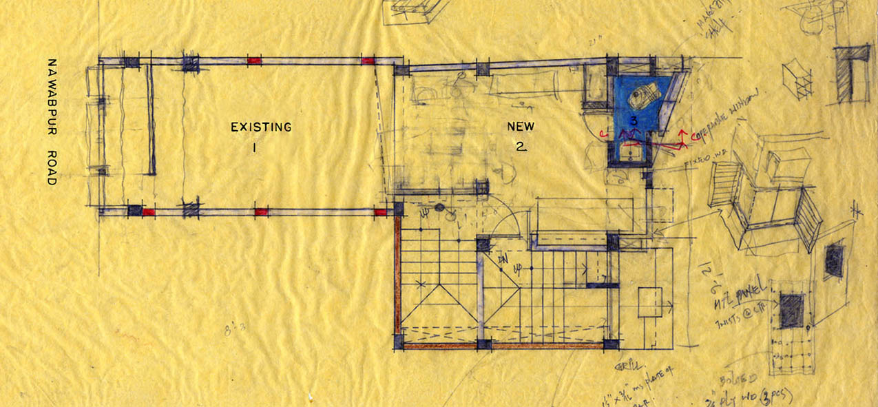 Over the years makes it extremely difficult to find an imbedded history and a language to read the buildings as a type. The dissimilarity from one layer of history to the next is evident in the built environment. Yet, there is a lucid conversation between the buildings. Their agreements to be together are not of codes or of rules, rather a mummer sound of negotiations and adjustments. They appear and disappear from nowhere and everywhere. They overlap, fold, twist, turn and rub against each other. They do follow a norm but this is not of civility but of existence. Almost a game in the surrealist's painting or the survival of the fittest in the theory of evolution. As an architect, I have chosen to construct a building and its architecture to magnify and capture these moments of ruptures. The energy of the surrounding and the weight of its physicality, bear marks through punches and lines on the surfaces that I have proposed. My work examines the built and the unbuilt. It frames and is framed with honesty of materials and in the process of its becoming, it participates and disengages with the given. Stripped of any color and cover, it attempts to speak of material, construction, and its time in space.